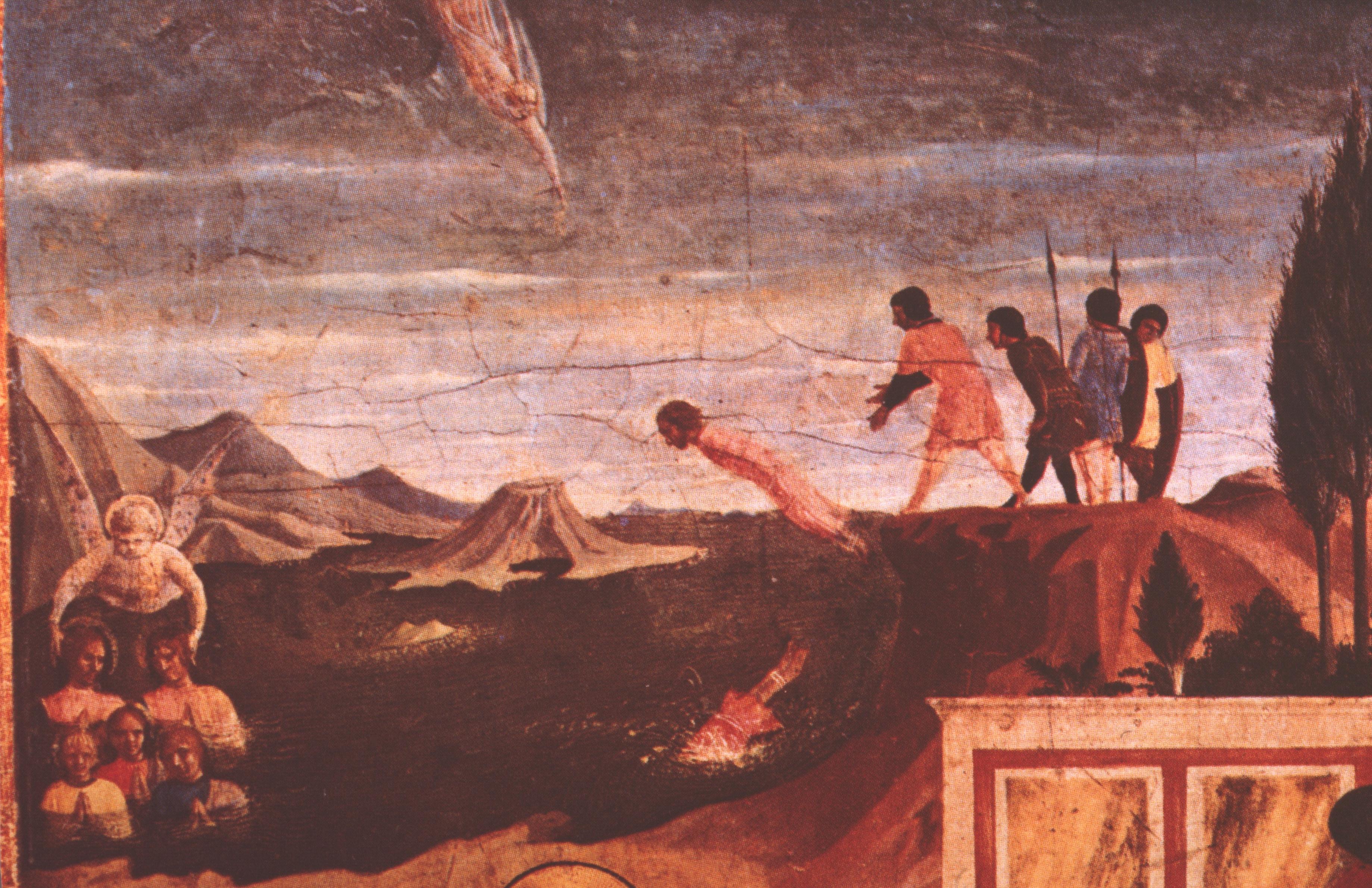 The body and gesture of the executioner who seeks to shield his face from the heat of the coals offer a good, final example of Giovanni’s skill in fresco towards the end of his life, but since the body of the saint has been further tormented by damp, perhaps this is a good place for me to ‘breathe my last’ in this lecture.