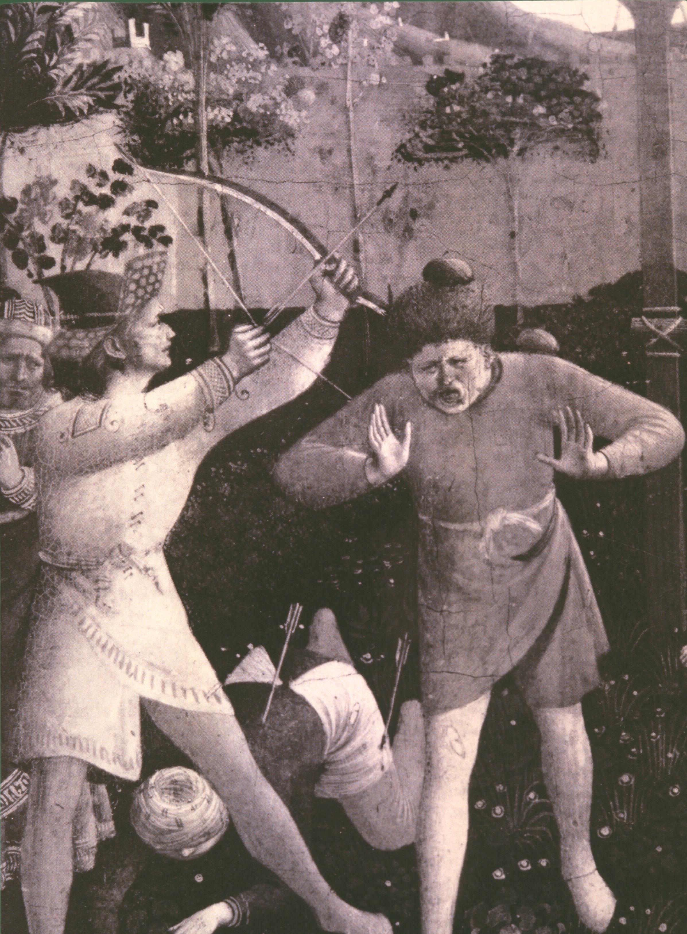 The brothers have survived fire, stones and arrows; but their luck cannot hold forever, and their end, as told in the Golden Legend, comes quickly.