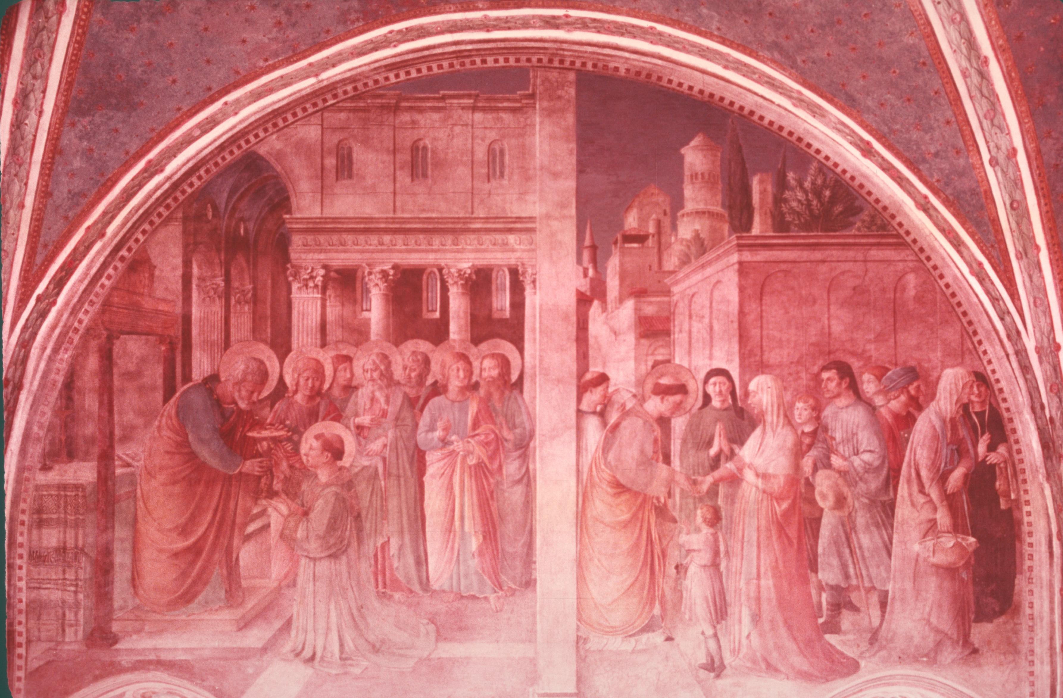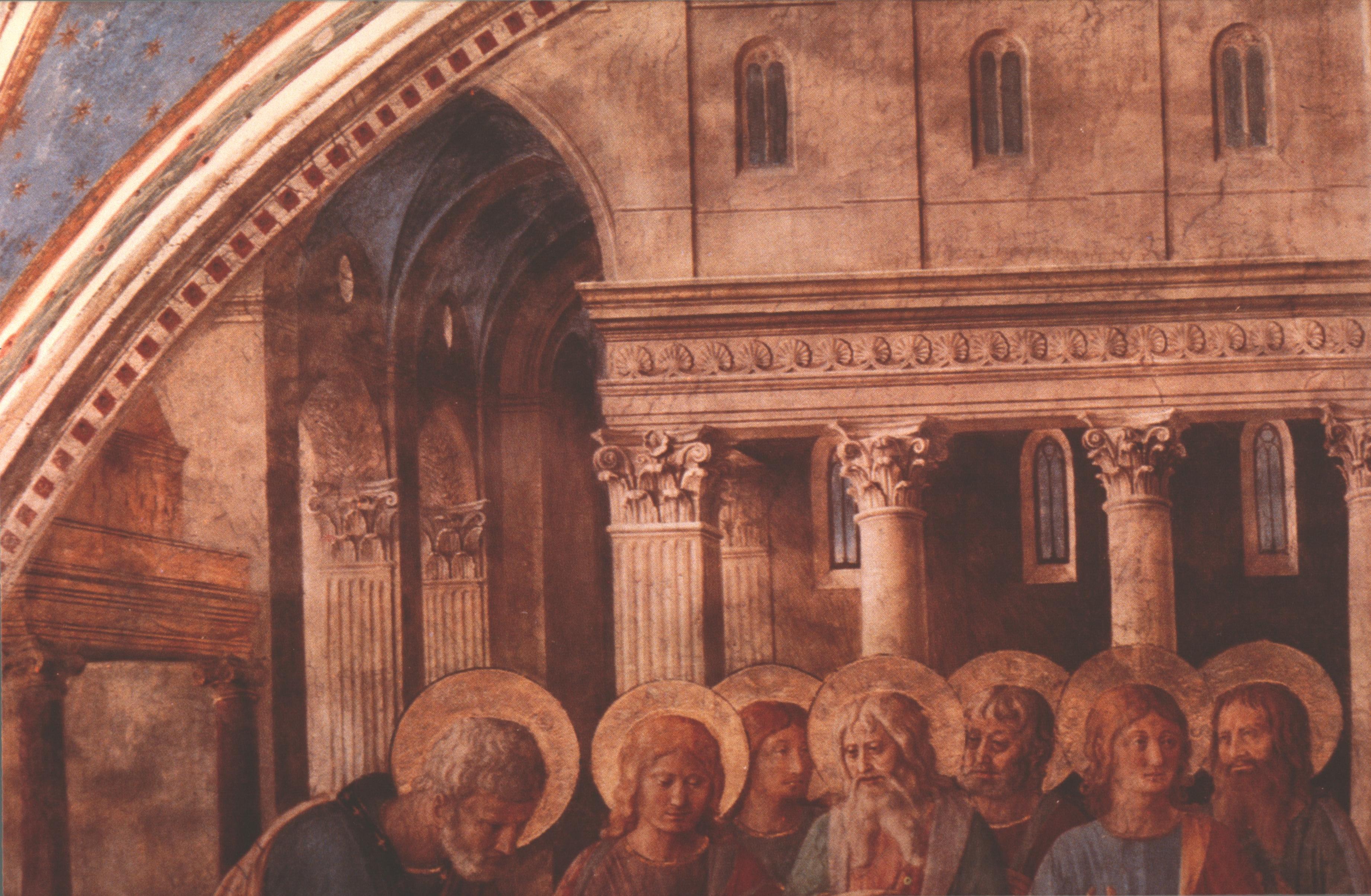 For the next ten years, Fra Giovanni was kept pretty busy in San Marco itself, where he obviously made himself master of the very different, bolder technique and of the paler colours which are required in fresco painting. He and a team of assistants decorated the cloister of the convent and its cells with a famous series of frescos depicting subjects drawn from the New Testament.