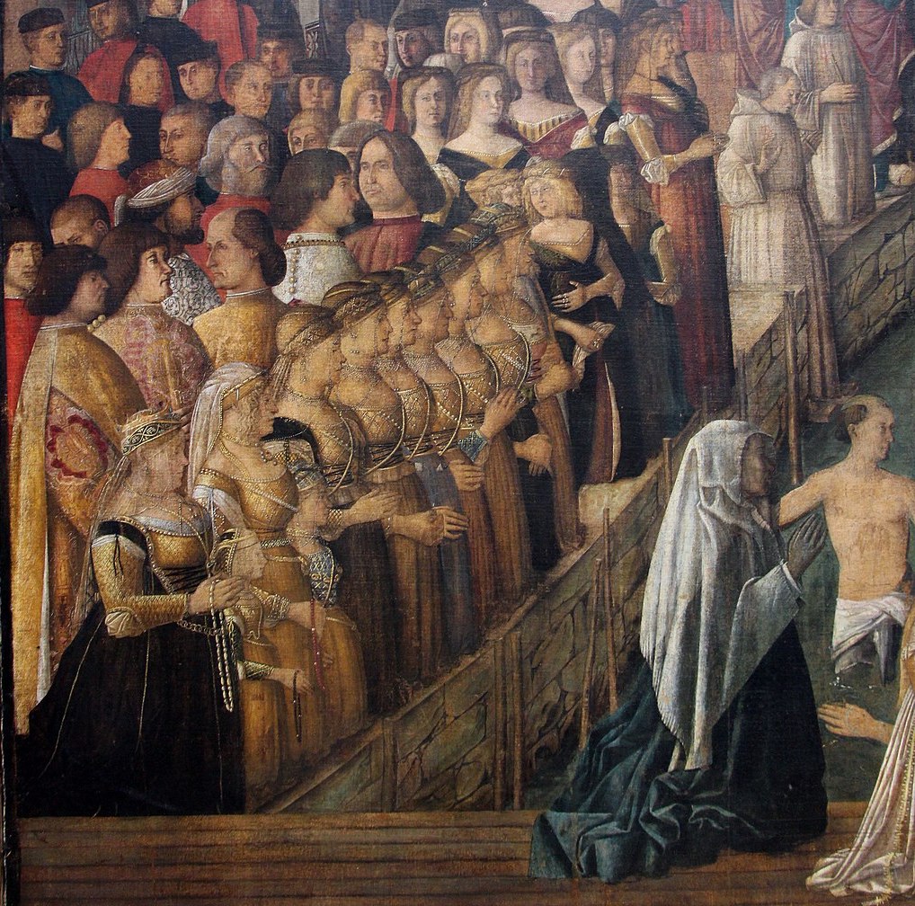Very often (as we shall see with regard to St George and St Ursula), the subject of the paintings commissioned by a School was the life of its patron saint. But in one very interesting case—the major School of St John the Evangelist—the Council of the Confraternity chose to represent and celebrate the miracles which had been worked by a sacred relic in their possession: miracles which had happened in Venice, some of them within living memory, to members of the School. As a result, their paintings give a fascinating glimpse of the social world for which all these ‘School-paintings’ were commissioned.