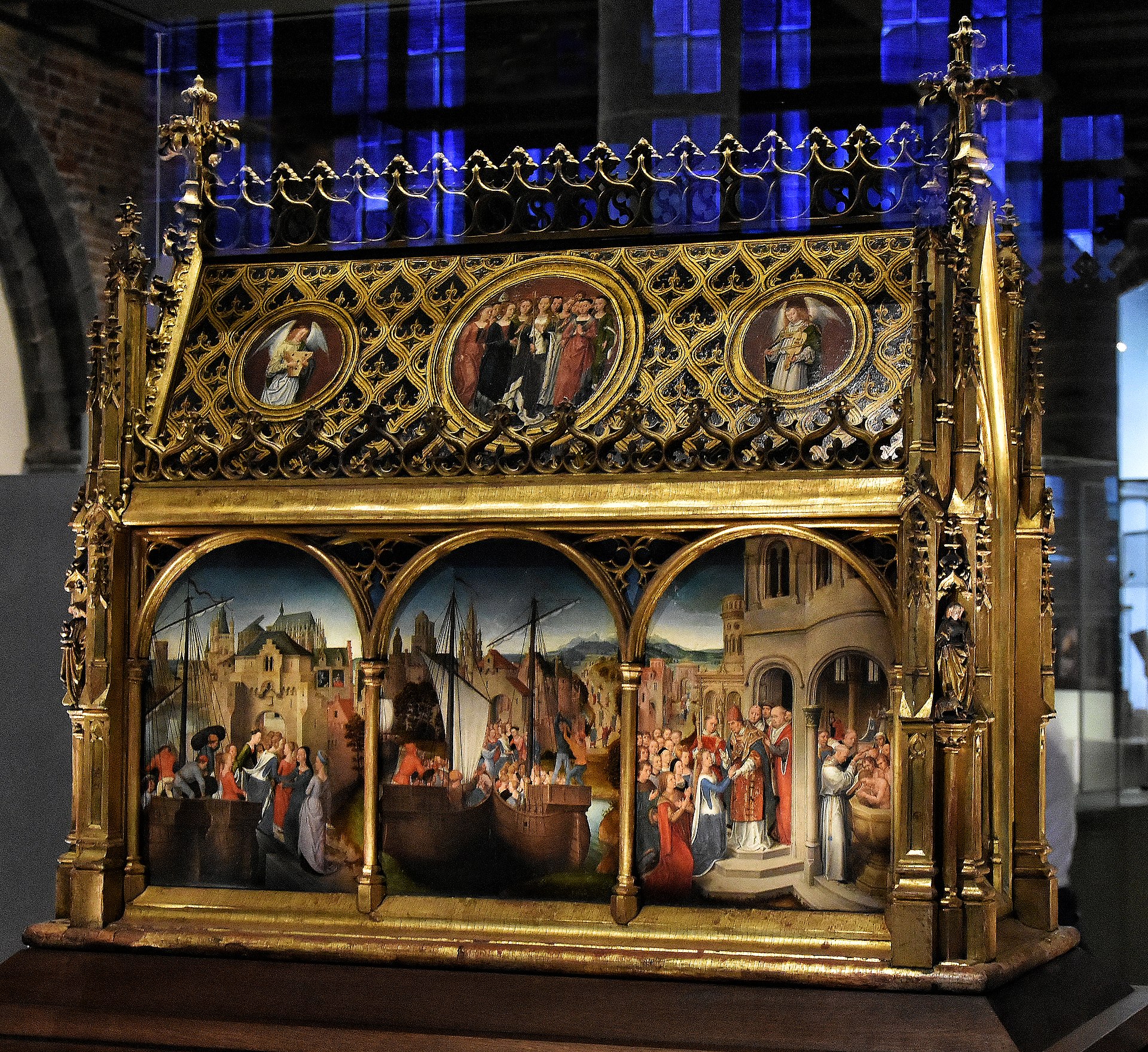 Figures 00 and 00 show the last two panels from Memling’s reliquary in Bruges, which provide an illustration for the conclusion of the story in the Golden Legend (notice that they share a continuous skyline and offer another study of the unfinished Gothic cathedral at Cologne).