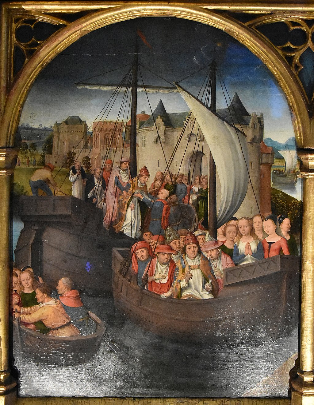 Scarcely have they met in person than a fleet (as stipulated in the marriage contract) begins to assemble in the harbour, to take the couple (and the 11,000 virgins!) on a voyage to the mouth of the Rhine, thence up the river to Basel, and overland to Rome.